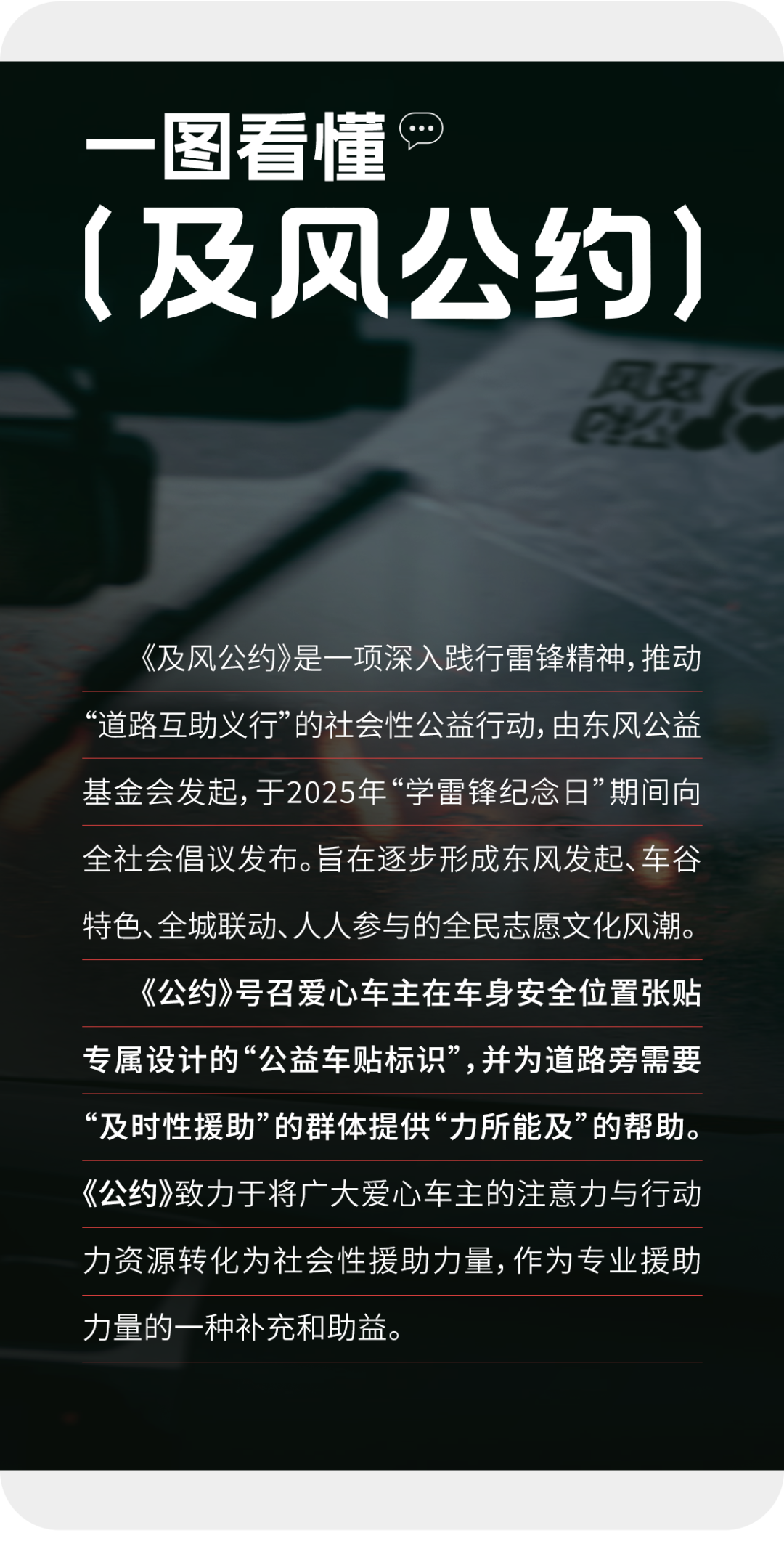 今天,我們以車輪為筆,重新書(shū)寫(xiě)新時(shí)代的雷鋒日記。當(dāng)千萬(wàn)車主的點(diǎn)滴善意匯成江河,這股東風(fēng)必將升騰而起,讓“及風(fēng)行動(dòng)”成為新時(shí)代向上向善的生動(dòng)注腳!