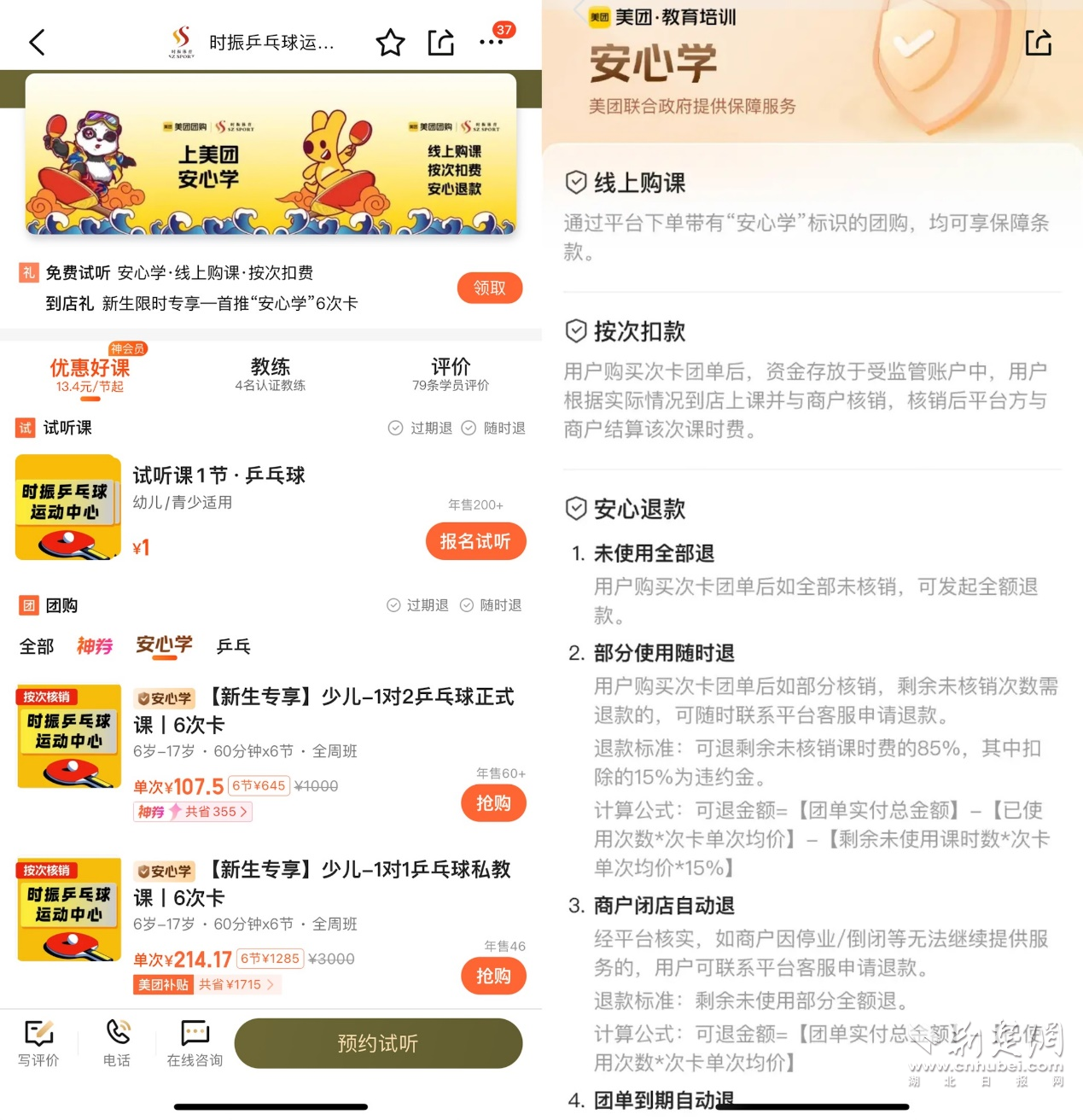 荊楚網(wǎng)(湖北日?qǐng)?bào)網(wǎng))訊(通訊員 雋蒙)“上一次課,核銷一次款項(xiàng)”的次卡團(tuán)購,正成為越來越多教育培訓(xùn)機(jī)構(gòu)的轉(zhuǎn)型新方向。美團(tuán)最新消息顯示,主打“一課一銷”的“安心學(xué)”次卡產(chǎn)品已面向全國(guó)鋪開,截至3月10日,全國(guó)100多城的上萬家教培機(jī)構(gòu)報(bào)名參與,課程數(shù)量超15000門。