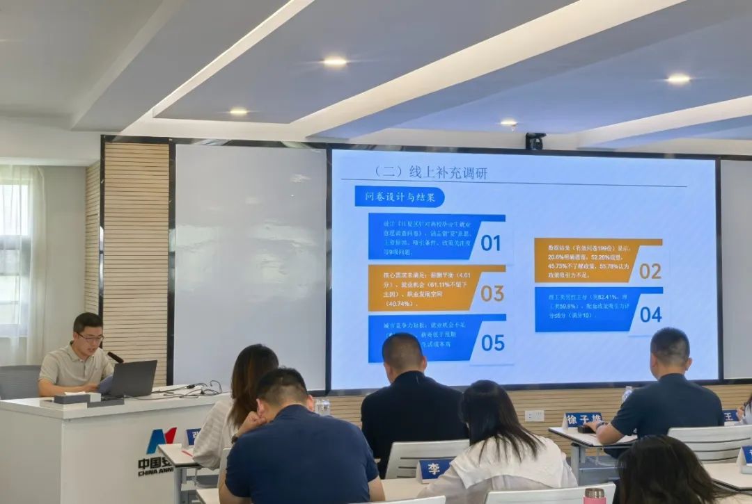“以新需求為導(dǎo)向,打造‘區(qū)級核心商圈+街區(qū)融合中心+社區(qū)特色網(wǎng)點’三級聯(lián)動商業(yè)布局,全面提升居民的生活品質(zhì)?!薄皩⒖萍汲晒D(zhuǎn)化、團隊培養(yǎng)等指標納入A、B和C類人才動態(tài)評價體系,探索‘區(qū)內(nèi)貢獻’與‘(人才)住房資源’的權(quán)重平衡機制”。結(jié)業(yè)式上,五組學(xué)員代表分別圍繞城市更新、AI技術(shù)賦能產(chǎn)業(yè)轉(zhuǎn)型、發(fā)展現(xiàn)代服務(wù)業(yè)體系、都市近郊農(nóng)業(yè)發(fā)展路徑探索和打造人才“引育留用”服務(wù)體系等主題,詳細匯報了本組調(diào)研成果,對相關(guān)領(lǐng)域存在的問題進行深入剖析,提出了一些有借鑒意義的思考建議。