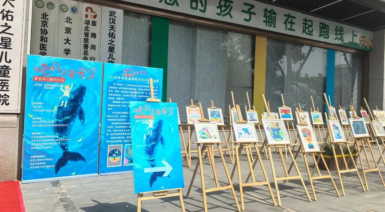 2025年4月2日,在第18個世界孤獨癥關注日當天,“星星與江豚的對話”繪畫巡展于武漢西北湖公園畔溫暖開展,30幅由孤獨癥兒童創(chuàng)作的畫作吸引數(shù)百名市民駐足。