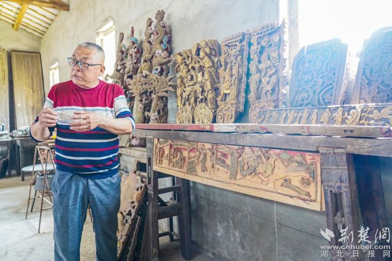“瞧瞧這個(gè)三羊開(kāi)泰紅木柜,左邊在浠水淘的,右邊在蘄春尋的,整整花了三年才湊成一對(duì)!”輕撫著油光锃亮的柜門,姜軍明眼中閃爍著光芒。