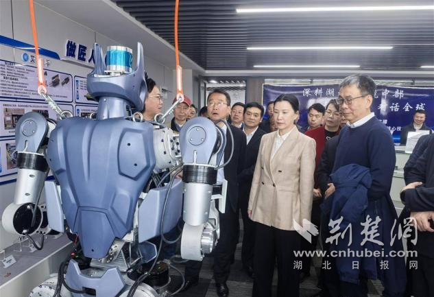 這是湖北省首個(gè)機(jī)器人領(lǐng)域技術(shù)創(chuàng)新中心,該中心由湖北科峰智能傳動(dòng)股份有限公司牽頭,聯(lián)合華中科技大學(xué)、武漢大學(xué)等20余所高校院所及產(chǎn)業(yè)鏈頭部企業(yè)共建,聘請中國工程院院士陳學(xué)東擔(dān)任戰(zhàn)略咨詢委員會主任、中國科學(xué)院院士劉勝擔(dān)任學(xué)術(shù)委員會主任。這標(biāo)志湖北在機(jī)器人核心技術(shù)創(chuàng)新與產(chǎn)業(yè)轉(zhuǎn)化上邁出關(guān)鍵一步。今年亮相“新春第一會”的“天問”1號人形機(jī)器人,由武漢大學(xué)劉勝院士團(tuán)隊(duì)研發(fā)。全身關(guān)節(jié)有30個(gè)自由度,靈巧手有7個(gè)自由度。它的傳感器、靈巧手、仿生關(guān)節(jié)和芯片等核心部件,80%實(shí)現(xiàn)了“鄂研鄂產(chǎn)”。