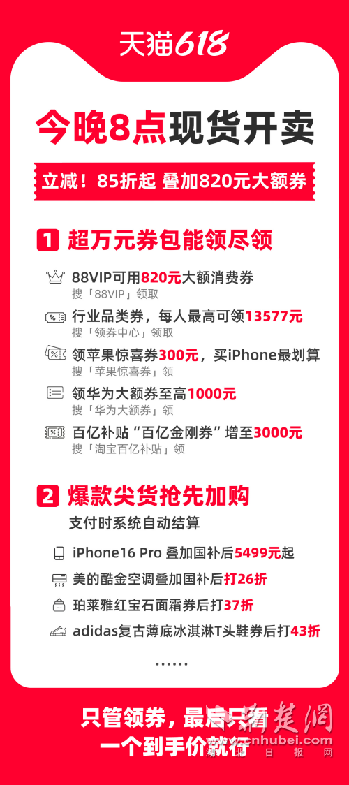 荊楚網(湖北日報網)訊(通訊員 朱飛)晚8點,天貓618現貨開賣!