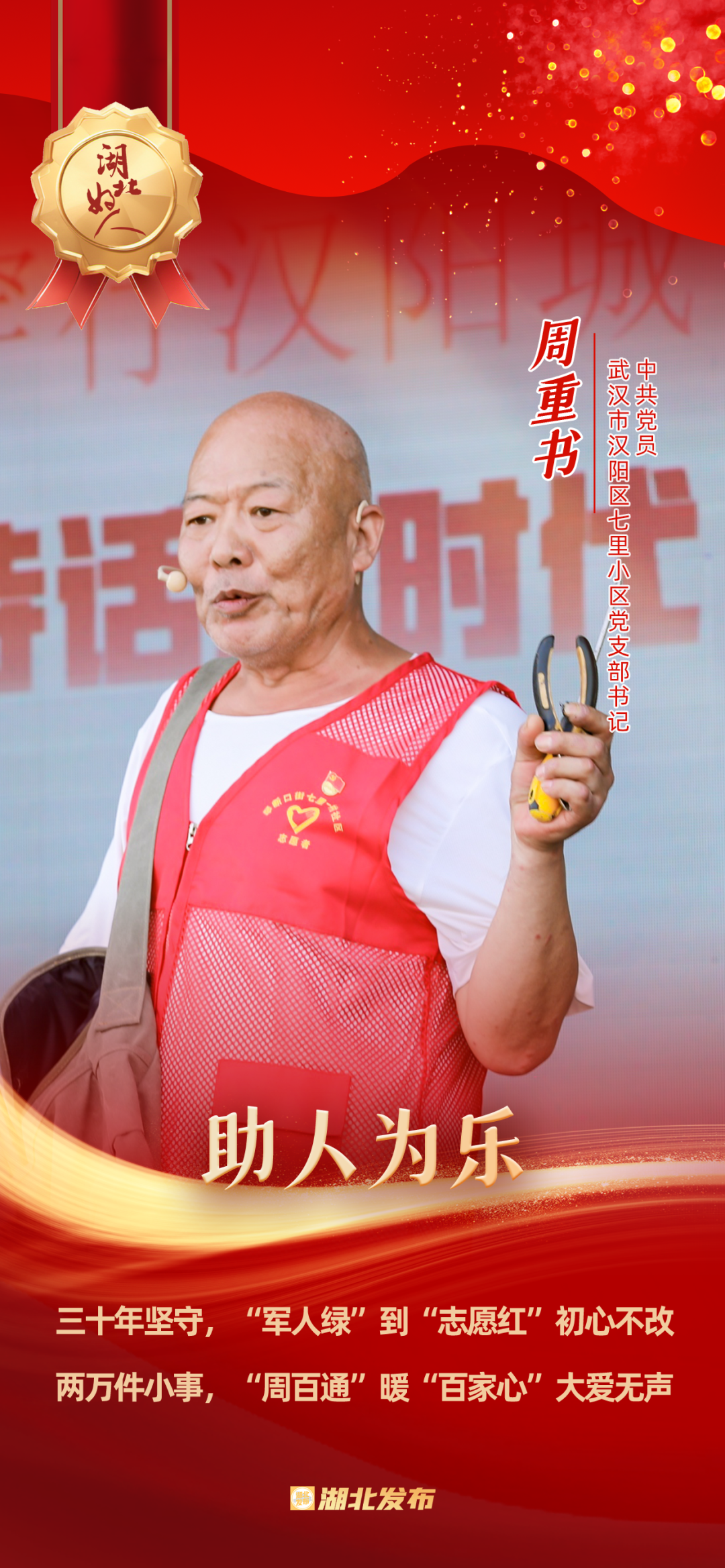 1973年在部隊(duì)入黨,1976年轉(zhuǎn)業(yè)到武漢家具廠,2009年被選為社區(qū)黨委委員,2023年榮獲“武漢楷?!狈Q(chēng)號(hào)……今年75歲的周重書(shū)是一名退伍老黨員,在部隊(duì)曾兩次榮立三等功,在工廠也多次被評(píng)為先進(jìn)工作者和模范標(biāo)兵。