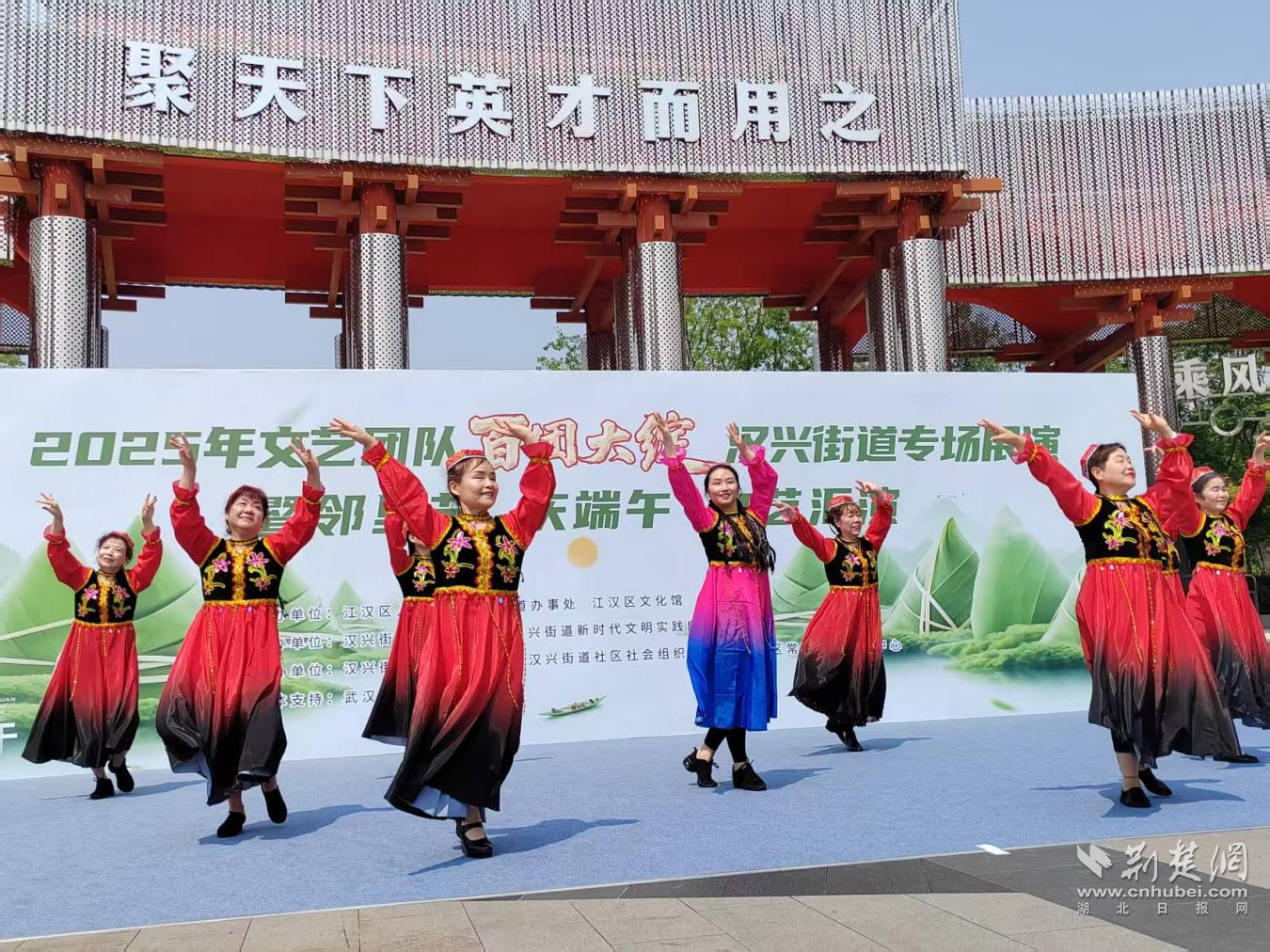 荊楚網(湖北日報網)訊(記者 何婧 通訊員 鄒瑜 徐曼)5月24日,江漢區(qū)漢興街道“百團大綻”專場展演暨鄰里節(jié)慶端午文藝匯演在常青公園人才廣場舉行。轄區(qū)居民們在歡歌熱舞中迎接濃情端午,共享一場文化盛宴。