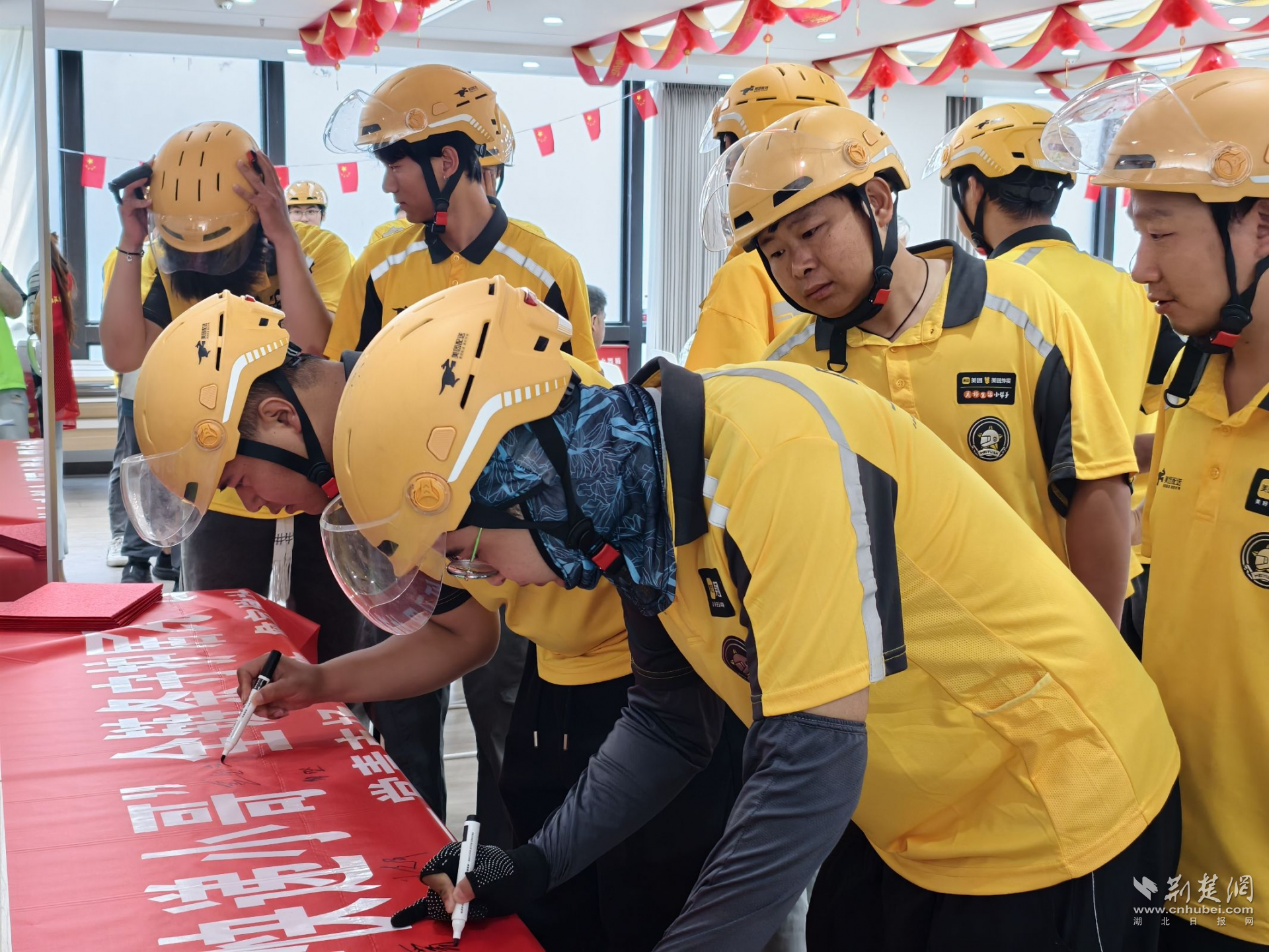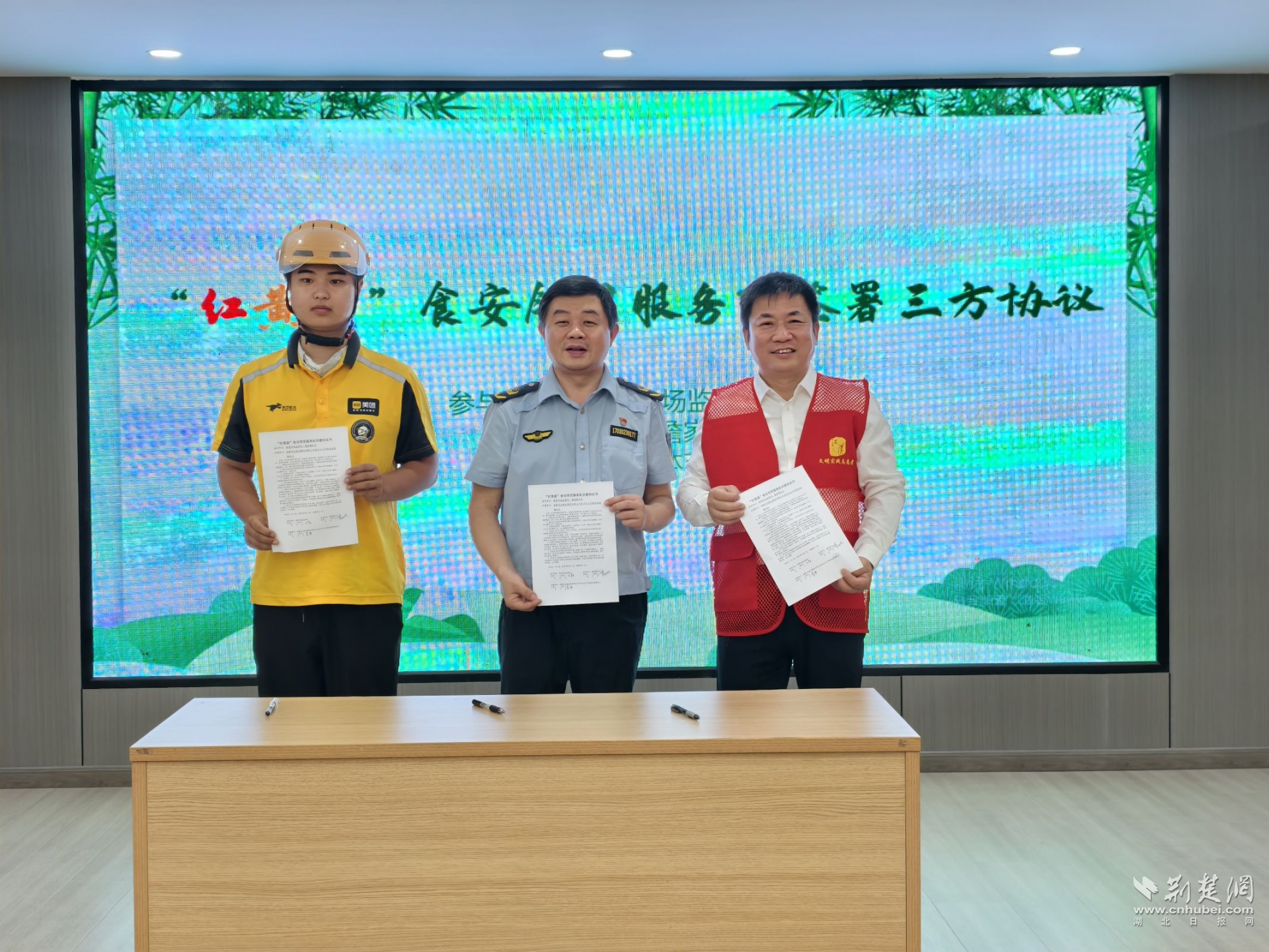 在簽約環(huán)節(jié),“紅黃藍(lán)”食安鄰里服務(wù)隊(duì)正式簽署“食安守護(hù)”共建協(xié)議,并發(fā)布食品安全倡議書。現(xiàn)場(chǎng)還向騎手代表送上端午禮包,鼓勵(lì)他們發(fā)揮職業(yè)優(yōu)勢(shì),化身食品安全“移動(dòng)哨兵”。