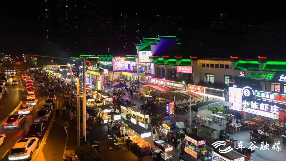 網(wǎng)紅集裝箱集市上,人們?nèi)宄扇?,手捧奶茶,聊天、散步,打工人迎來一天中最松弛的時刻。不遠處,兒童樂園傳來陣陣歡笑,快樂氣球屋、小雞快跑是孩子們的最愛。萬達金街上,烤串、麻辣燙飄香,耳邊傳來“走,去擼串!”“快來,吃油燜大蝦!”