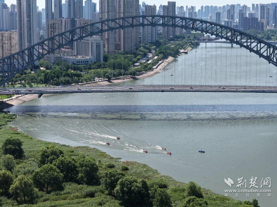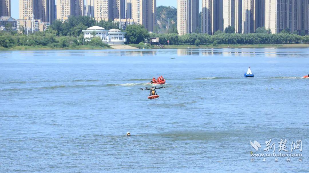活動現(xiàn)場還模擬了7·16武漢國際渡江節(jié)救援保障演練。只見漢臺救援專業(yè)力量協(xié)同作戰(zhàn),模擬了選手體力不支、突發(fā)疾病、被水流帶偏航道等可能出現(xiàn)的多種緊急情況。水面上,救生艇快速靠近“遇險”人員;救援人員迅速將其拉上船,實施急救。同時,無人機高空巡航,利用熱成像與高清攝像頭實時監(jiān)測江面,一旦發(fā)現(xiàn)異常,便即刻通知救援船只精準(zhǔn)救援,為渡江節(jié)筑牢安全防線。