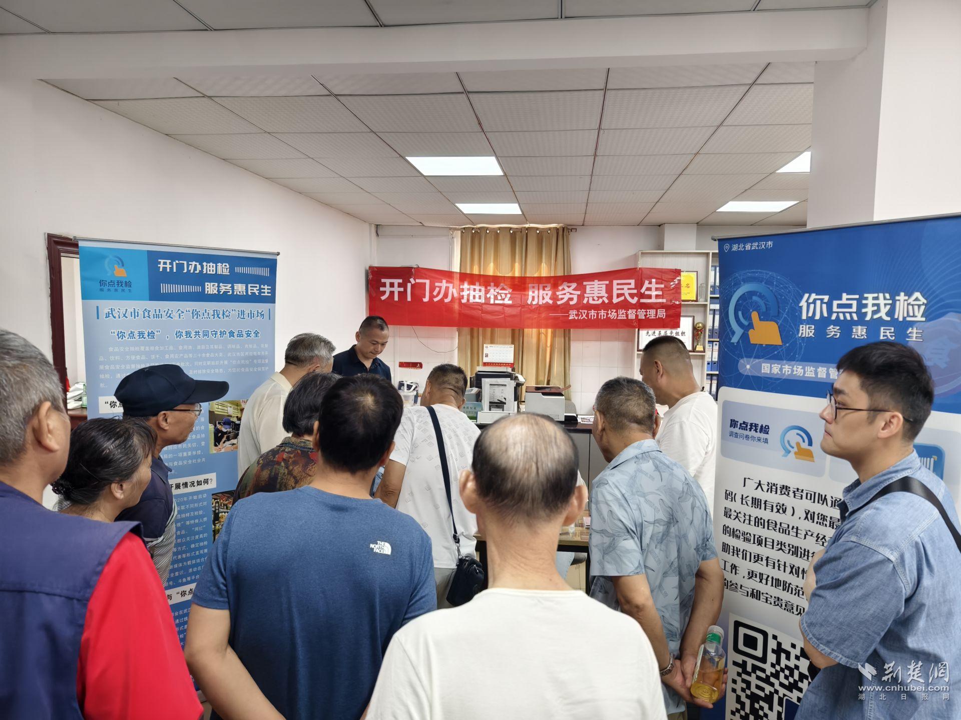 當(dāng)日上午,在永慶社區(qū)居委會(huì),“你點(diǎn)我檢”活動(dòng)吸引了眾多社區(qū)居民參與。武漢市市場(chǎng)監(jiān)管局產(chǎn)品質(zhì)量安全抽檢監(jiān)測(cè)處工作人員向居民介紹,食品安全“你點(diǎn)我檢”活動(dòng)是市場(chǎng)監(jiān)管部門組織開展的“開門辦抽檢”工作創(chuàng)新,是回應(yīng)民生關(guān)切的一項(xiàng)重要舉措,并邀請(qǐng)現(xiàn)場(chǎng)居民通過掃碼等方式,參與食品安全“你點(diǎn)我檢 服務(wù)惠民生”民意征集。圍觀市民積極踴躍參與,認(rèn)真填寫問卷。