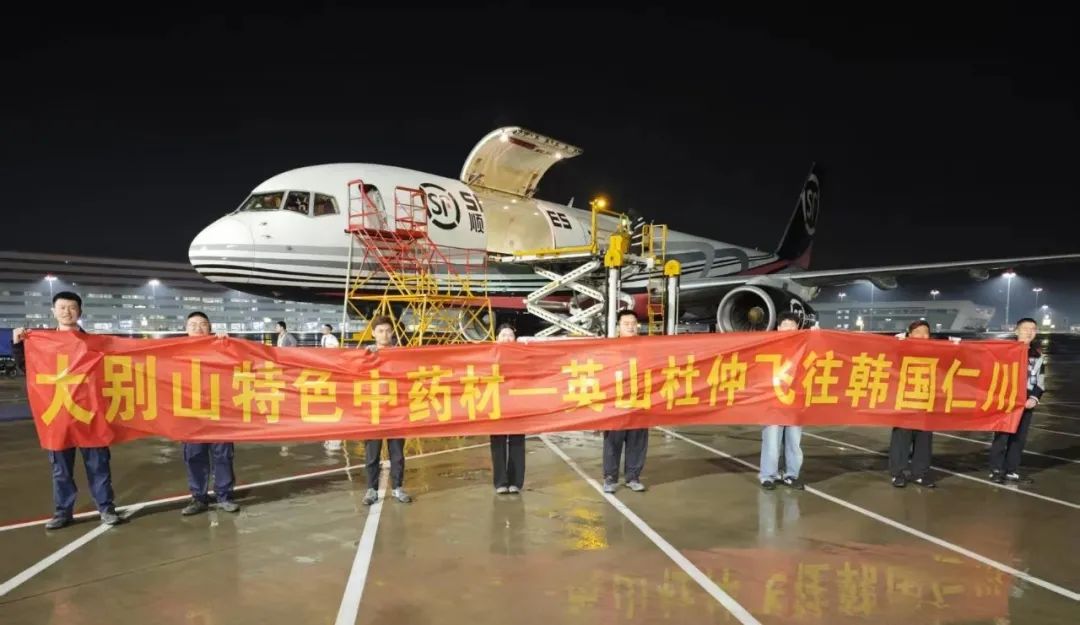 卸貨、稱重、貼標(biāo)、安檢、打板、上車,一氣呵成……5月15日下午,86箱1.37噸英山杜仲,在黃岡城市貨站完成預(yù)報(bào)關(guān)、稱重等流程后,運(yùn)往花湖國(guó)際機(jī)場(chǎng),搭乘次日5時(shí)11分飛往韓國(guó)仁川的順豐航空O3141航班,僅3小時(shí)19分后便抵達(dá)目的地。