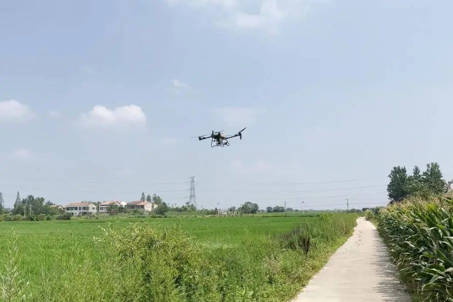 “混合肥料包含水稻專用肥、微量元素水溶肥以及磷酸二氫鉀,按科學(xué)比例調(diào)配。施肥過程中,無人機(jī)的參數(shù)設(shè)置通常為高度3米、噴幅6米、飛行速度每秒13.8米?!碧照芩闫稹靶寿~”,“無人機(jī)作業(yè)8小時(shí),就能完成500畝的施肥,相比人工作業(yè),效率大幅提升?!?/p>