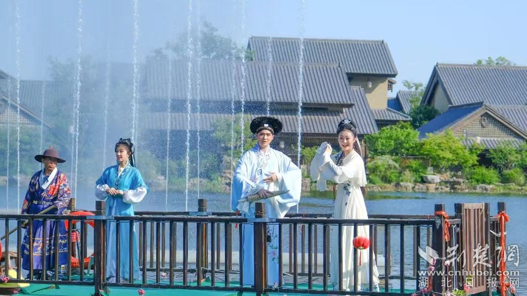 在黃梅,數(shù)字賦能的觸角,早已延伸至文旅場景的角角落落。東山問梅村打造沉浸式夜游項目,大型光影秀《風從東山來》以數(shù)字技術為媒,將悠遠的戲曲傳說娓娓再現(xiàn),讓游客在光影流轉中觸摸戲韻。