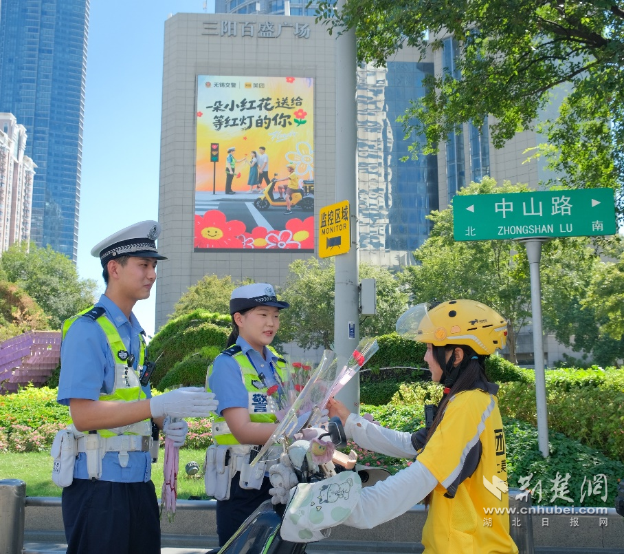 荊楚網(wǎng)(湖北日?qǐng)?bào)網(wǎng))訊(通訊員小雨)8月29日七夕當(dāng)天,美團(tuán)在西寧、鄭州、蘭州、深圳、武漢等全國16座城市同步發(fā)起“送你一朵小紅花”交通安全倡導(dǎo)行動(dòng)。各城市交警在十字路口、斑馬線前為遵守交通規(guī)則的騎手和市民送上鮮花及反光貼紙,傳遞“安全出行”理念。活動(dòng)現(xiàn)場(chǎng),近萬人領(lǐng)取到倡導(dǎo)交通安全文明的“小紅花”。據(jù)了解,這是美團(tuán)在全國發(fā)起的騎手交通安全正向激勵(lì)系列活動(dòng)之一,旨在推動(dòng)騎手交通安全意識(shí)提升與權(quán)益保障的常態(tài)化。
