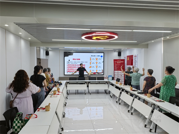 隨后,醫(yī)師帶領(lǐng)居民們學(xué)習(xí)傳統(tǒng)養(yǎng)生功法“八段錦”。伴隨著舒緩的口令,大家認(rèn)真練習(xí)“雙手托天理三焦”“左右開弓似射雕”等動作,體驗中國傳統(tǒng)運動在調(diào)理氣血、舒緩壓力方面的功效。