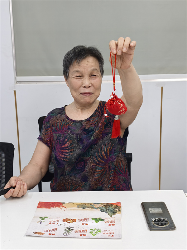 手工香囊制作區(qū),居民們精心調(diào)配艾草、薄荷、丁香等中藥材,親手制作出一個個藥香清雅、造型精致的養(yǎng)生香囊,既體驗了動手樂趣,也學(xué)習(xí)了中藥養(yǎng)生知識。