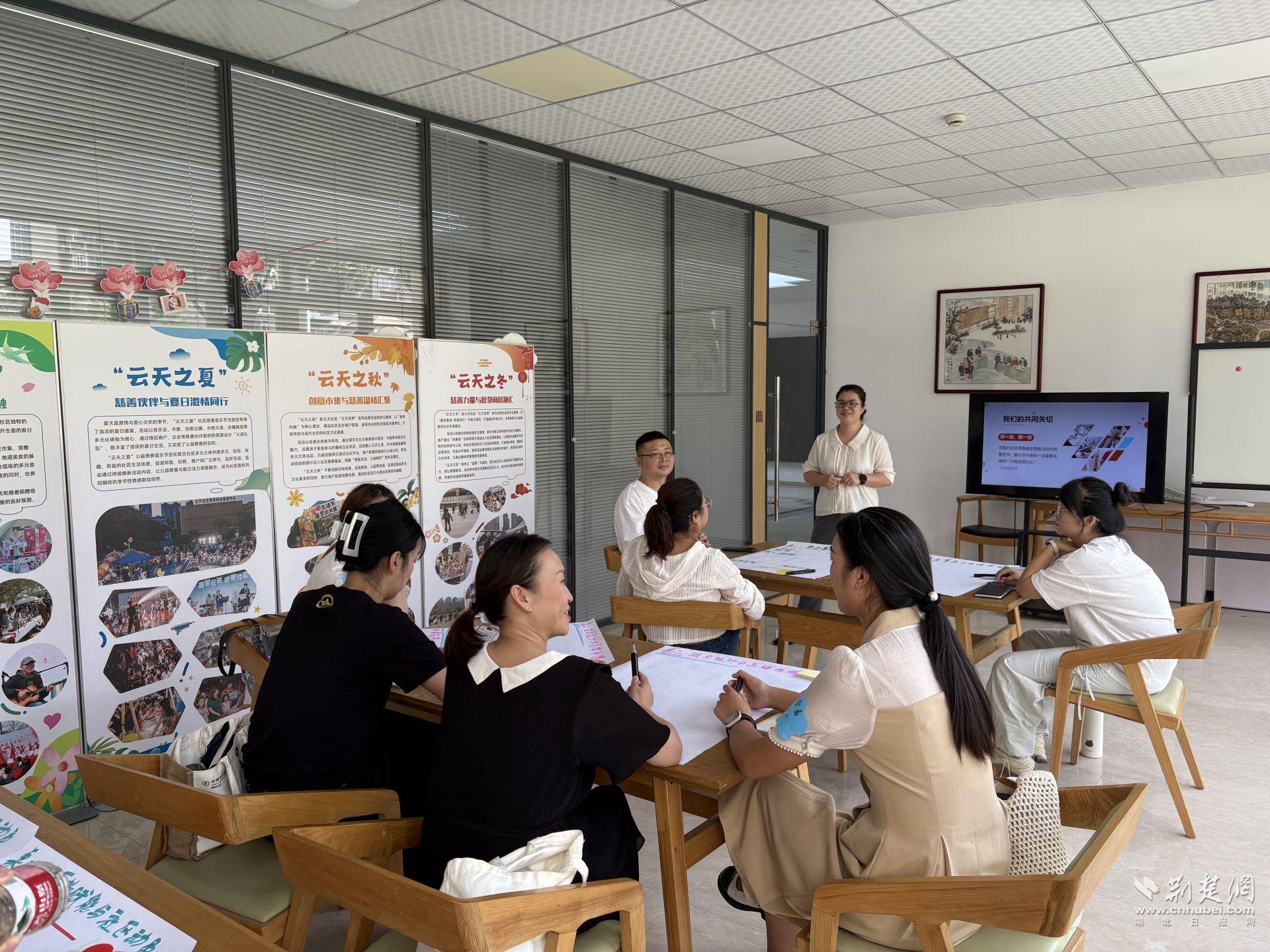 荊楚網(wǎng)(湖北日?qǐng)?bào)網(wǎng))訊(記者 何婧 通訊員 劉心悅 樊文婷)初秋的午后,武漢市江漢區(qū)萬(wàn)松街道云天社區(qū)黨群服務(wù)中心里熱鬧非凡。12個(gè)街道社工站的負(fù)責(zé)人圍坐在一起,或比劃,或記錄,圍繞“如何讓社區(qū)慈善基金籌得來(lái)、管得好、用得久”展開(kāi)頭腦風(fēng)暴。