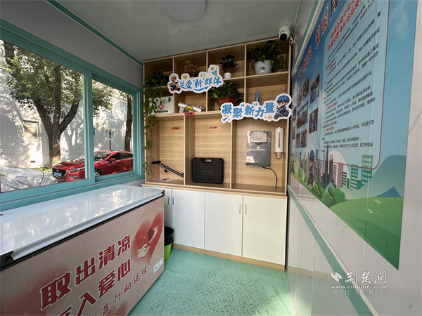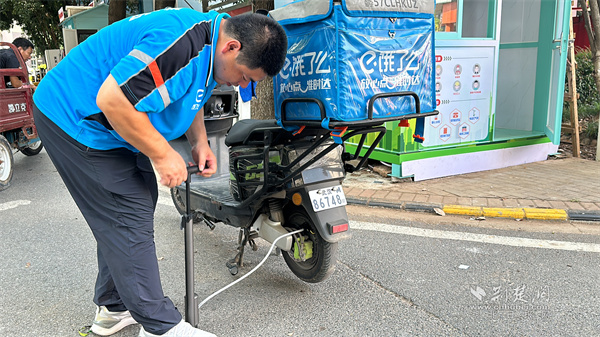 社區(qū)在北大門入口處設(shè)立的“暖心補(bǔ)給站”,成了小哥們的“能量加油站”。拉開補(bǔ)給站的冰柜,冰爽的礦泉水整齊擺放;醫(yī)藥箱里,創(chuàng)可貼、碘伏、藿香正氣水等應(yīng)急藥品一應(yīng)俱全;維修工具箱和電動(dòng)打氣筒已幫十多位小哥解決過電動(dòng)車爆胎、零件松動(dòng)的難題;打包袋也方便了小哥臨時(shí)更換破損外賣包裝。“夏天送完餐,來這兒取瓶冰水,渾身的燥熱都散了,心里也涼快!”快遞小哥王師傅邊說邊拿起一瓶水,臉上滿是滿足。