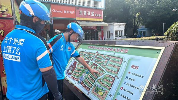 此外,社區(qū)還貼心優(yōu)化配送環(huán)境。小區(qū)出入口立起全景圖立牌,清晰標(biāo)注配送路線和臨時(shí)停車位;主干道增設(shè)24個(gè)指引牌,44棟樓都裝上了夜光樓棟牌,路口盲區(qū)的凸面反光鏡,守護(hù)著小哥的騎行安全。不僅如此,社區(qū)還經(jīng)常組織小哥們開展活動(dòng),盛夏送清涼時(shí),遞上防暑物資;趣味運(yùn)動(dòng)會(huì)上,一起玩“大錘打氣球”“摸石過河”,歡聲笑語中拉近了彼此的距離。