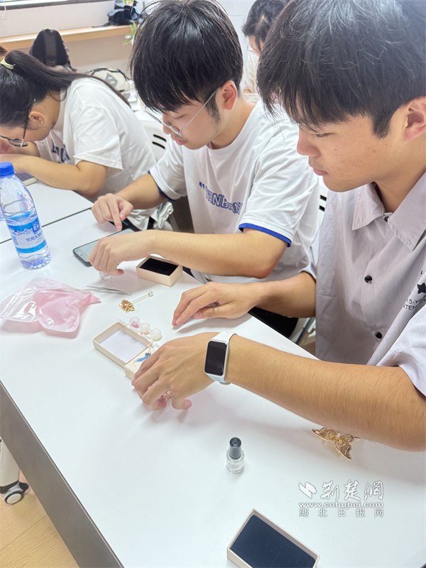 活動尾聲,大家手持親手制作的胸針作品合影留念,一張張燦爛的笑臉寫滿了成就感與喜悅。一名青年感慨道:“平時很少有機會接觸這樣的傳統(tǒng)工藝,今天既學(xué)到了七夕文化知識,又親手體驗了螺鈿技藝,覺得特別有意義!”