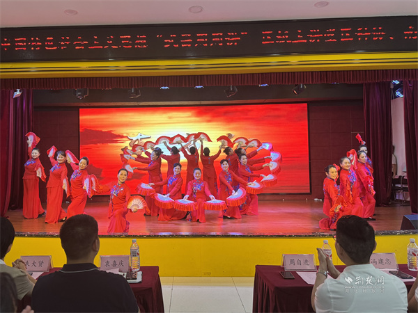 文藝表演精彩紛呈,將現(xiàn)場氣氛一次次推向高潮。桃之緣舞蹈隊的扇子舞《東方紅》熱情似火,扇影翻飛間,既致敬革命先輩,又歌頌新時代;都市桃源社區(qū)的情景劇《幸福都市里 桃源花正香》生動演繹了社區(qū)共建的幸福畫卷,贏得陣陣掌聲;花樣年華舞蹈隊的《秋收起義》仿佛將觀眾帶回那段激情燃燒的歲月。最后,全場齊唱《沒有共產(chǎn)黨就沒有新中國》,嘹亮的歌聲唱出了對黨和國家的無限熱愛。