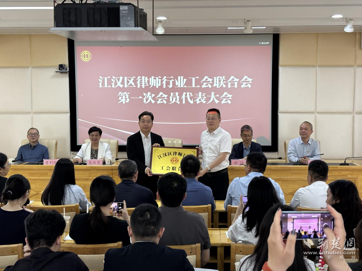 隨后,會(huì)議現(xiàn)場(chǎng)為江漢區(qū)律師行業(yè)工會(huì)聯(lián)合會(huì)進(jìn)行授牌,宣布江漢區(qū)律師行業(yè)工會(huì)聯(lián)合會(huì)正式成立。