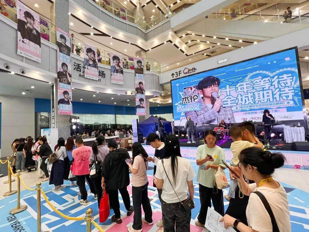 9月26日—28日,周杰倫主題音樂會(huì)嘉年華活動(dòng)在永旺夢(mèng)樂城武漢經(jīng)開購(gòu)物中心連續(xù)三天上演?!敖苊浴眰冋具M(jìn)專屬打卡框,與“杰倫”同框合影,參加粉絲互動(dòng)活動(dòng),領(lǐng)取應(yīng)援周邊,沉浸式體驗(yàn)“倫”式浪漫。永旺夢(mèng)樂城武漢經(jīng)開購(gòu)物中心相關(guān)負(fù)責(zé)人告訴記者,9月27日,永旺夢(mèng)樂城接待市民近10萬人,銷售額超800萬元。