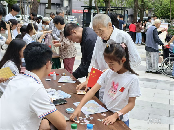 9月28日,“禮贊祖國(guó)華誕,共赴文明之約”國(guó)慶文明實(shí)踐活動(dòng)緊接著上演,“新時(shí)代文明實(shí)踐百姓大舞臺(tái)”成為活動(dòng)核心載體,讓居民既是觀眾也是參與者。舞臺(tái)上,歡快熱烈的鑼鼓《中國(guó)人》拉開(kāi)序幕,武漢方言三句半《文明新風(fēng)尚》用接地氣的語(yǔ)言講述社區(qū)文明故事,詩(shī)朗誦《文明的力量》以深情的語(yǔ)調(diào)傳遞文明建設(shè)的重要意義。舞臺(tái)旁的親子互動(dòng)區(qū)同樣熱鬧,“國(guó)旗徽章”制作區(qū)里,志愿者向孩子講解國(guó)旗的設(shè)計(jì)意義與象征內(nèi)涵,孩子們認(rèn)真粘貼、組裝,將愛(ài)國(guó)種子悄然種在心中;“文明拼圖與愛(ài)國(guó)徽章組合”活動(dòng)中,家庭成員分工協(xié)作,把印有“文明禮讓”“和諧鄰里”“愛(ài)護(hù)環(huán)境”等字樣的拼圖碎片一一拼接,在動(dòng)手過(guò)程中加深對(duì)文明規(guī)范的理解。