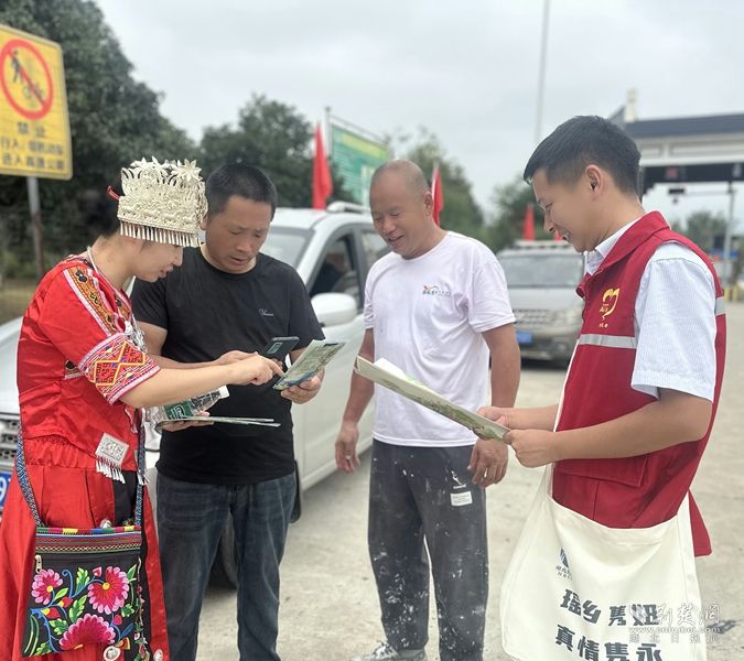 作為“瑤族發(fā)源地”的省界窗口,這里的服務(wù)滿是瑤鄉(xiāng)風(fēng)情。“瑤鄉(xiāng)雋妞”們身著紅馬甲,遇本地老鄉(xiāng)用方言嘮家常,提醒“前面路口減速”。碰上外地游客,就用普通話介紹美景美食。電子指引里還加了特產(chǎn)介紹,不少司乘被吸引,專程去逛古瑤村、買特產(chǎn)。志愿服務(wù)從“幫個(gè)忙”變成了推介瑤鄉(xiāng)文化的“活名片”。