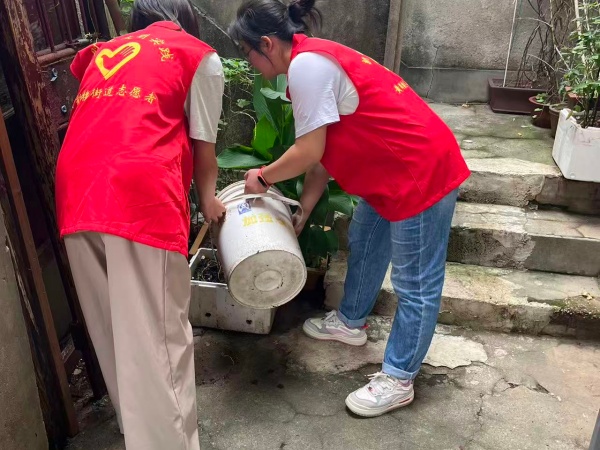志愿者們深入街巷,清理各類積水容器。 通訊員供圖
