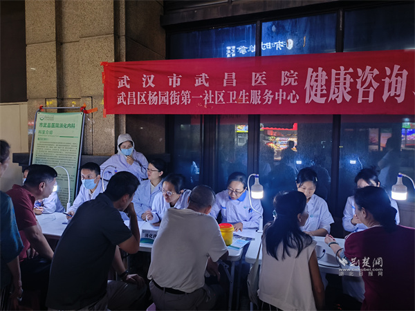 當(dāng)日,隨著夜色降臨,義診桌前臺(tái)燈逐一亮起。來(lái)自武昌醫(yī)院消化內(nèi)科、呼吸內(nèi)科等科室的專家醫(yī)師現(xiàn)場(chǎng)坐診,就常見(jiàn)的慢性病管理、飲食養(yǎng)生及用藥安全等問(wèn)題,為居民進(jìn)行耐心解答,并對(duì)不同病癥的居民給出個(gè)性化的健康指導(dǎo)。社區(qū)衛(wèi)生服務(wù)中心婦保科的醫(yī)生也忙碌其中,為女性居民提供婦科健康咨詢與知識(shí)科普。