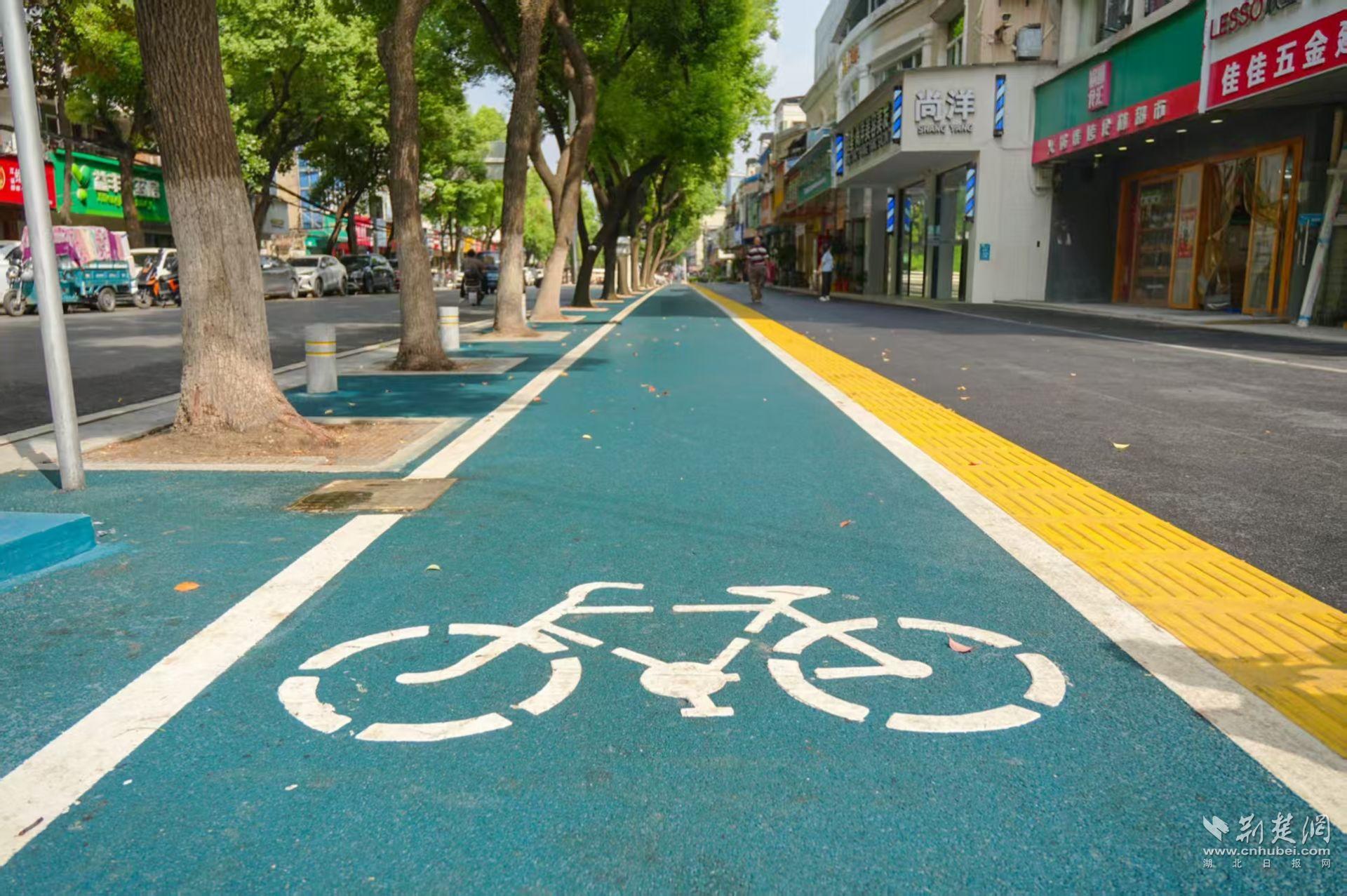 4700平方米舊地磚全部拆除后,施工隊(duì)鋪上彩色瀝青——人行道黑色、非機(jī)動(dòng)車(chē)道酞青藍(lán),兩種顏色通過(guò)白色標(biāo)線清晰分隔。緊挨著白色標(biāo)線的是亮黃色盲道,在施工中摒棄傳統(tǒng)磚材,創(chuàng)新采用無(wú)機(jī)高強(qiáng)聚合材料,現(xiàn)澆即用,有效減少施工對(duì)行人的影響,實(shí)現(xiàn)降本增效。此外,針對(duì)沿街商戶門(mén)前自建臺(tái)子高低不一、材料雜亂問(wèn)題,采用花崗巖磚統(tǒng)一鋪成1.2米寬的臺(tái)面,與瀝青路面無(wú)縫對(duì)接,更平整美觀了。