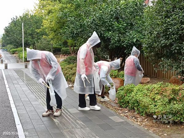 收拾路面垃圾。 通訊員供圖