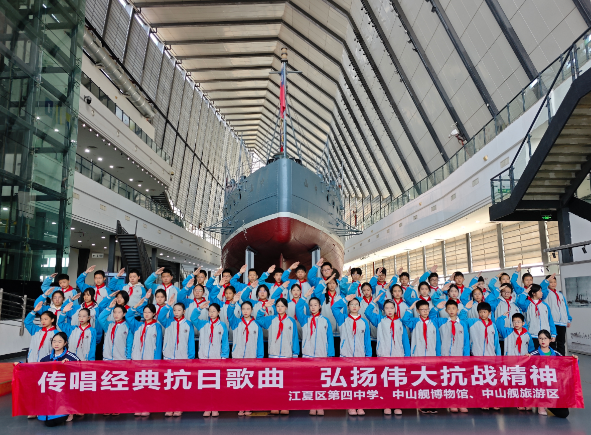 活動于上午8時30分在中山艦艦體前正式啟幕。中山艦旅游區(qū)管理處講解員以艦體尾部“中山”二字的歷史淵源為切入點,講述中山艦從訂購到參與抗戰(zhàn)的全歷程,專業(yè)解讀中融入文物背后的英雄故事;緊接著全體人員齊聲合唱《保衛(wèi)大武漢》《保衛(wèi)黃河》兩首抗戰(zhàn)經(jīng)典歌曲,伴隨著激昂的旋律,戰(zhàn)火紛飛的年代仿佛就在眼前,八十七年前中山艦官兵在武漢會戰(zhàn)中浴血奮戰(zhàn)的壯烈場景重現(xiàn)腦海。