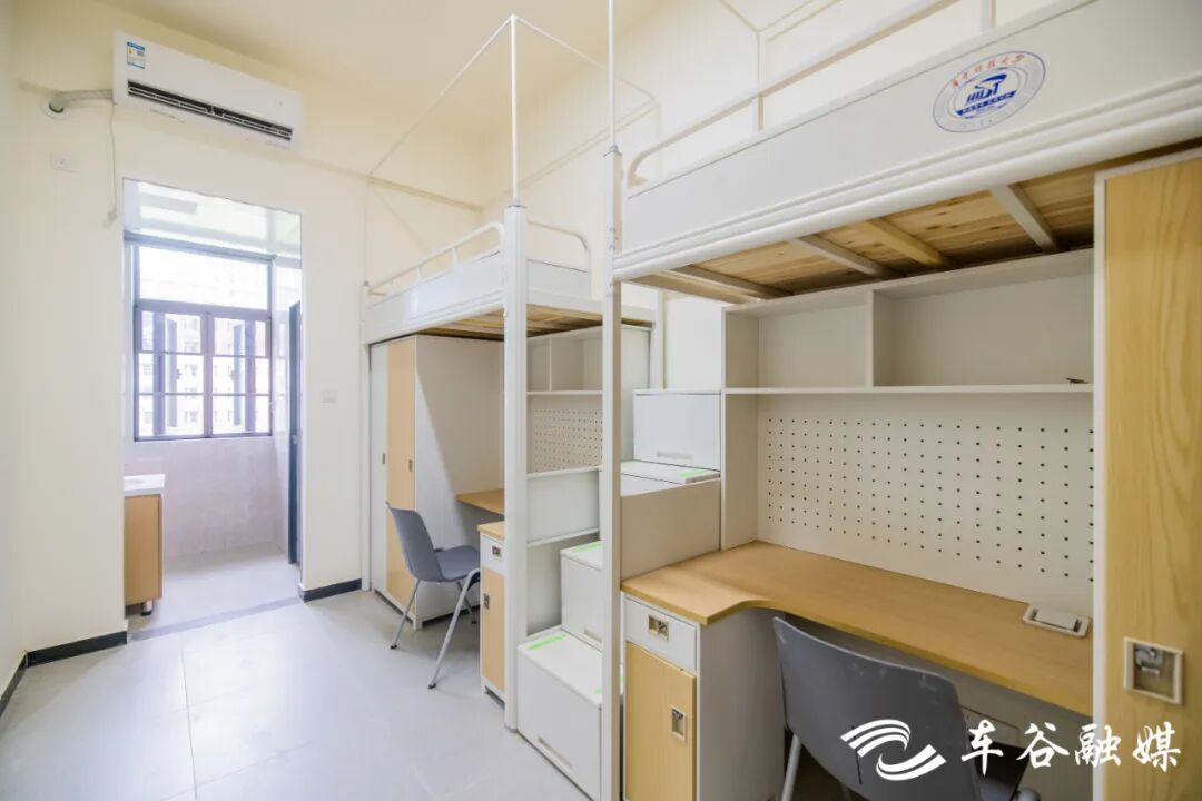 軍山校區(qū)建有7棟學(xué)生宿舍樓。北區(qū)的2棟主要面向本科生,以四人間為主。南區(qū)的5棟主要面向研究生,碩士生宿舍為兩人間,博士生宿舍為八人套房。宿舍樓一層為公共空間與服務(wù)樞紐,設(shè)有接待前臺(tái),提供寄存、維修、反饋等服務(wù),設(shè)有多功能學(xué)習(xí)與活動(dòng)空間、自習(xí)室、研討室、黨團(tuán)活動(dòng)室、咨詢(xún)室,滿(mǎn)足多種需求。二層及以上是住宿區(qū),電梯直達(dá)、功能完善,公共服務(wù)區(qū)配備洗衣機(jī)、烘干機(jī)、洗鞋機(jī)、直飲機(jī)。宿舍采用智能門(mén)鎖,上床下桌,獨(dú)立衛(wèi)浴,多功能學(xué)習(xí)桌搭配人體工學(xué)座椅,為學(xué)生提供舒適的學(xué)習(xí)住宿環(huán)境。