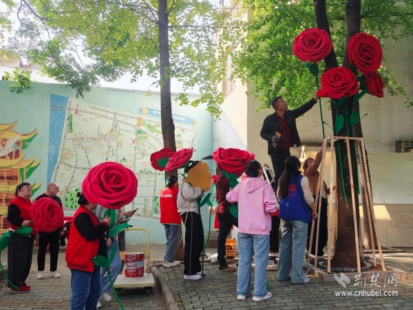 這棵“愛之樹”是街道殘聯(lián)聯(lián)合西廠口社區(qū)開展的“杏運(yùn)相伴,玫好家園”殘健融合公共藝術(shù)共創(chuàng)活動(dòng)的成果,轄區(qū)陽光家園學(xué)員、助殘志愿者、居民代表和社區(qū)工作者共同參與,以親手制作的巨型銀杏葉與玫瑰花裝點(diǎn)社區(qū)空間,傳遞“黃鶴樓下是我家”的溫暖。