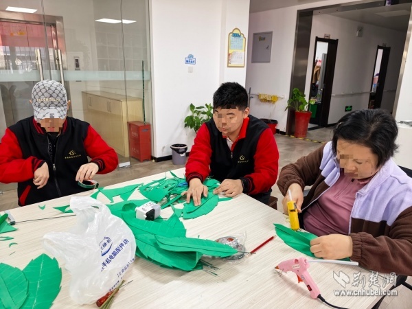 在為期兩周的創(chuàng)作中,陽光家園學(xué)員在志愿者的陪伴下,從設(shè)計(jì)畫圖、精準(zhǔn)剪裁到立體塑形、精細(xì)組裝,系統(tǒng)學(xué)習(xí)并逐步掌握了銀杏葉與玫瑰花的制作技巧。“第一次參與制作這么大的藝術(shù)作品,沒想到我也能創(chuàng)造出這么美的作品!”一位學(xué)員自豪地展示成果。創(chuàng)作過程中,殘健伙伴分工協(xié)作、各展所長,在默契配合中締結(jié)了深厚情誼。