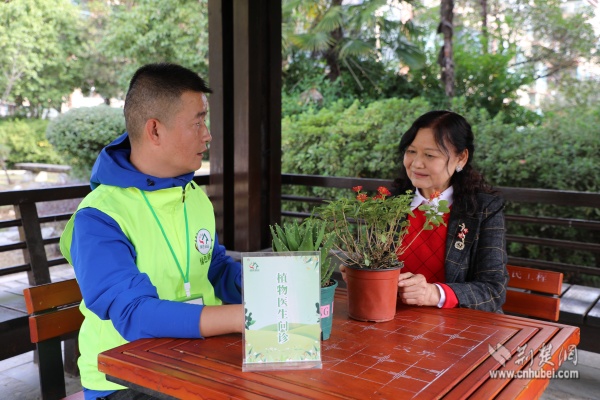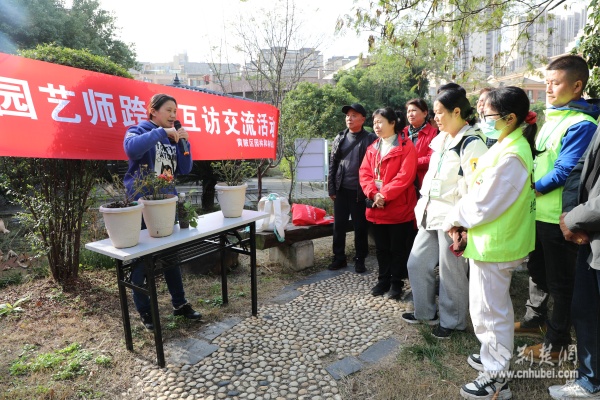 江漢區(qū)民權街道打銅社區(qū)園藝師辛高爐分享植物養(yǎng)護經驗。 通訊員供圖