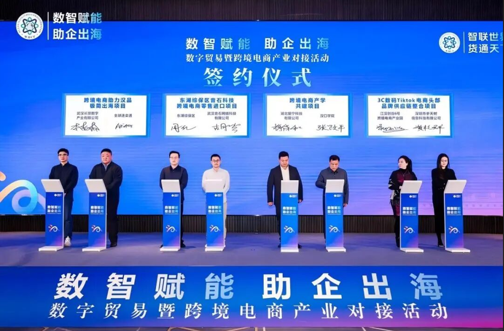 本次對(duì)接活動(dòng)強(qiáng)化產(chǎn)學(xué)研合作對(duì)接,共促成10項(xiàng)數(shù)字貿(mào)易和跨境電商產(chǎn)業(yè)鏈生態(tài)鏈合作項(xiàng)目在漢落地,涉及數(shù)字產(chǎn)業(yè)、物流供應(yīng)鏈、智庫(kù)建設(shè)、產(chǎn)學(xué)共建、人才培養(yǎng)等多個(gè)領(lǐng)域。例如,專注企業(yè)出海營(yíng)銷的數(shù)字服務(wù)商易海創(chuàng)騰將在武漢設(shè)立華中區(qū)加速服務(wù)運(yùn)營(yíng)中心,浙江天誠(chéng)供應(yīng)鏈、深圳參天樹(shù)信息科技等優(yōu)質(zhì)服務(wù)商也將加大在漢業(yè)務(wù)布局。