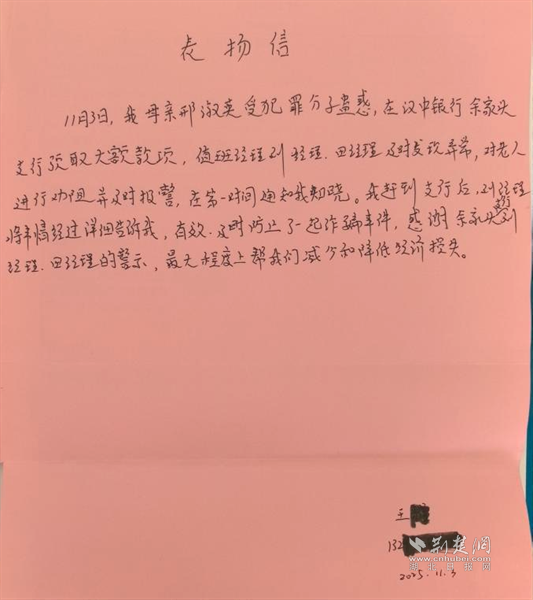 收到居民的表揚(yáng)信。 通訊員供圖
