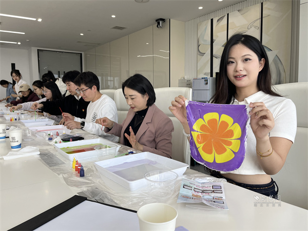 制作手工絲巾水拓畫(huà)。 通訊員供圖