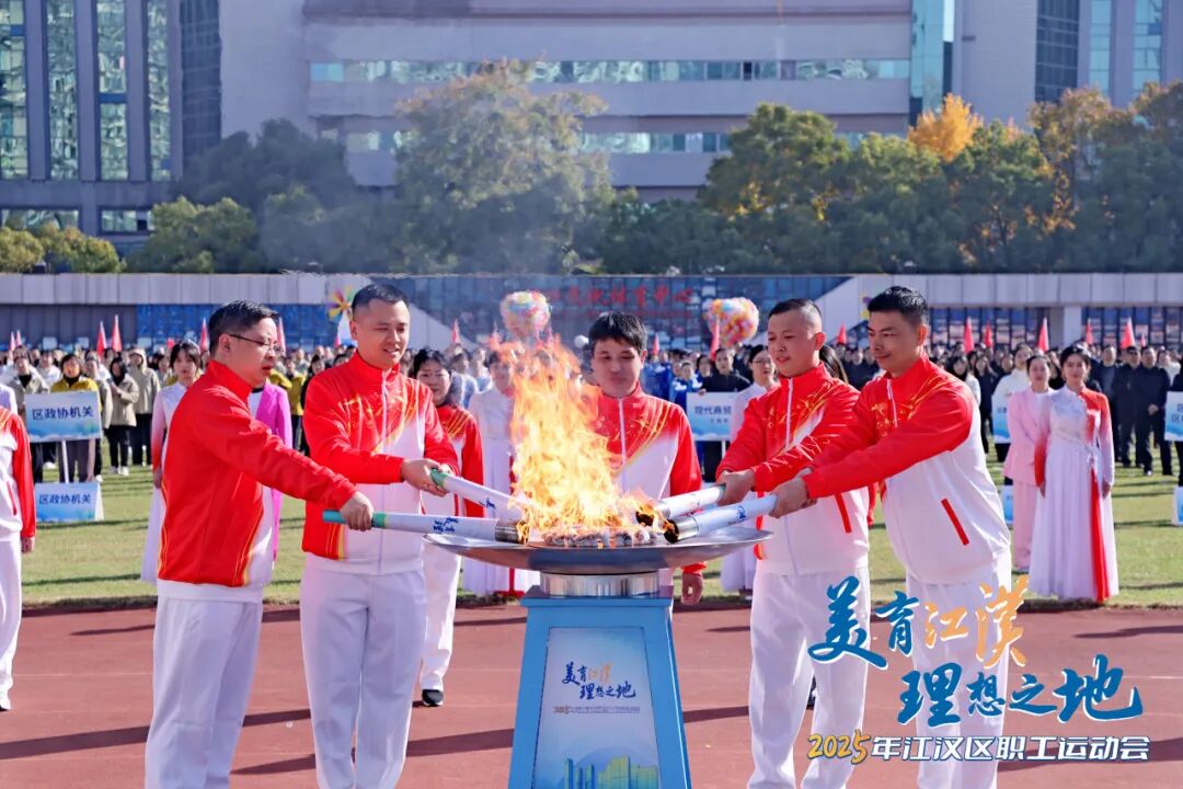 現(xiàn)場,“新興之火”“數(shù)智之火”“金融之火”“樞紐之火”“人文之火”五棒火炬依次點亮,張裕、付俊、邵青、張寶劍、孟廣松等15位勞模代表接力傳遞。燃燒的火焰,照耀著江漢區(qū)在科技創(chuàng)新、數(shù)字化轉(zhuǎn)型、金融強區(qū)、商貿(mào)物流、文商體旅融合等發(fā)展領(lǐng)域堅定向前。當所有火炬手共同點燃主圣火盆,彩球騰空,全場沸騰,運動會正式開幕。