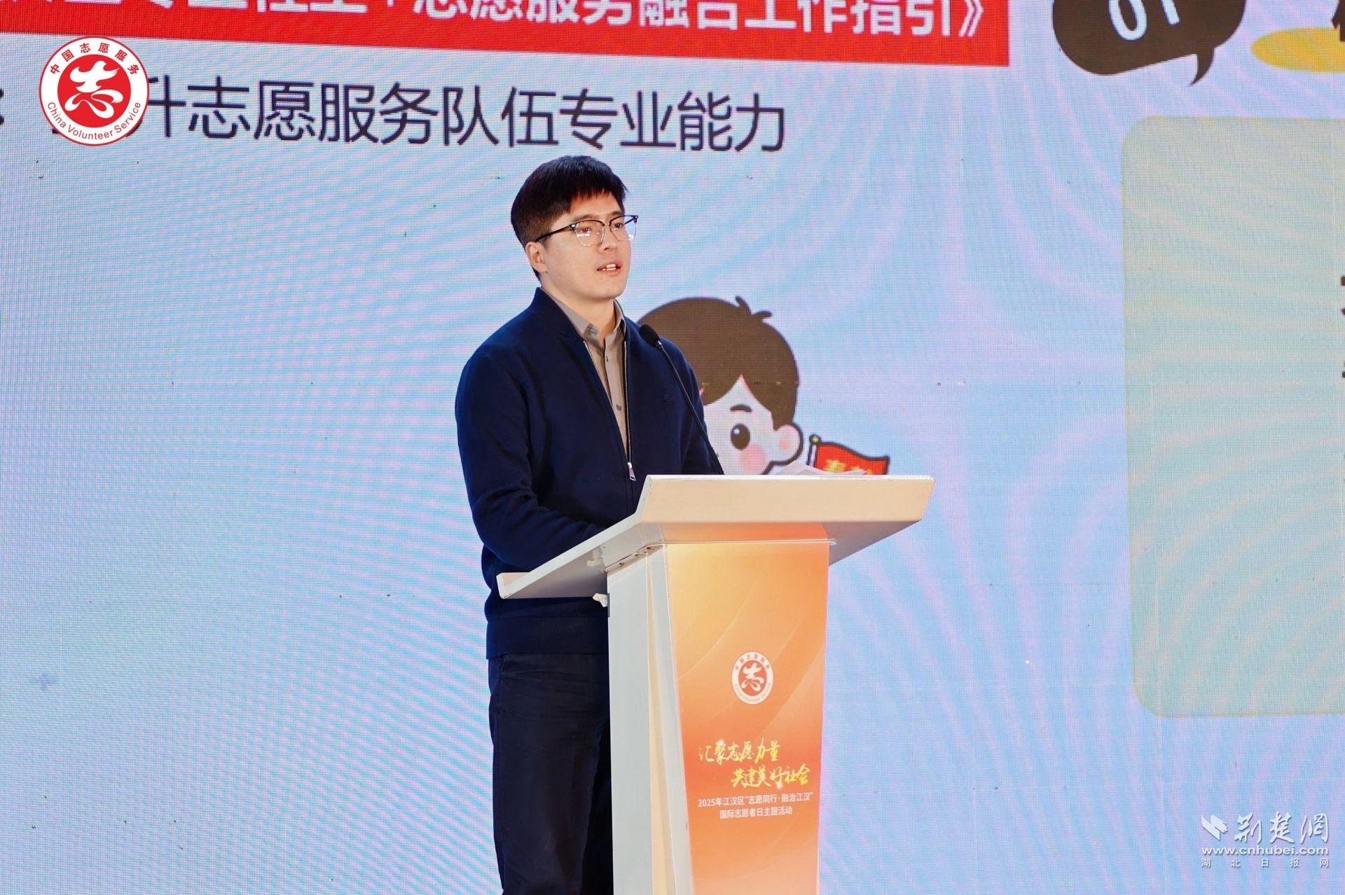 活動伊始,武漢市委社會工作部相關(guān)負責人首先傳達了習近平總書記給中國志愿服務聯(lián)合會的賀信精神并致辭?!百R信對新時代志愿服務工作提出了更高要求,也為全市志愿服務事業(yè)高質(zhì)量發(fā)展指明了方向。”他表示,江漢區(qū)作為武漢志愿服務的重要力量,要在志愿服務專業(yè)化、品牌化和社會化方面持續(xù)探索,推動志愿服務更聚焦民生所需,更貼近基層治理實際,讓志愿精神在江漢持續(xù)發(fā)光發(fā)熱。