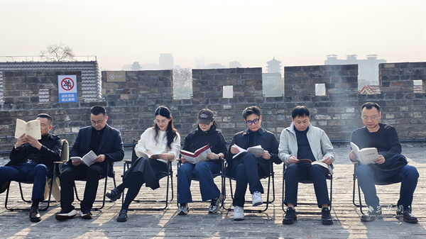 本次讀書會(huì)選址于武昌古城墻,場景設(shè)置頗具深意。一側(cè)是斑駁厚重的明代舊磚,承載著城市悠遠(yuǎn)記憶;另一側(cè)是企業(yè)家手中關(guān)于AI的前沿書卷,指向充滿可能的科技未來。厚重歷史與尖端技術(shù)在此交匯,恰呼應(yīng)了“智啟未來 城載古今”的活動(dòng)主題。