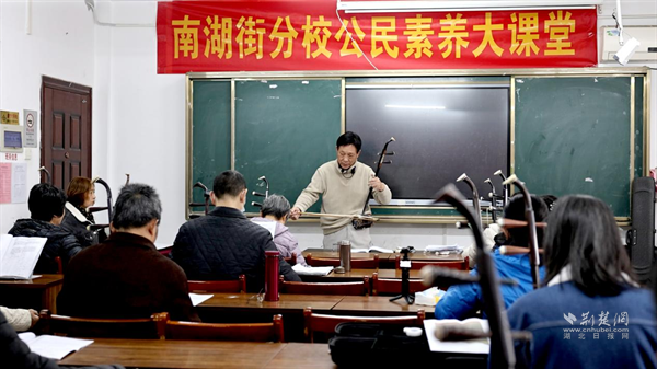 荊楚網(wǎng)(湖北日?qǐng)?bào)網(wǎng))訊(記者 李燕 通訊員 羅嘉柯)早上九時(shí),武昌區(qū)南湖街道一棟樸素的三層小樓已開始躍動(dòng)起生活的韻律。二胡聲悠揚(yáng),葫蘆絲清亮,提著樂器的阿姨們步履輕快、笑意盈盈地走進(jìn)樓內(nèi)。這里是南湖街老年大學(xué),一個(gè)每日門庭若市、笑語盈窗的地方。每一位走進(jìn)這里的老人,都仿佛推開了另一扇生活的門——門外是瑣碎日常,門內(nèi)卻是歌聲、筆墨、舞蹈與友誼。而這幅生機(jī)盎然的景象,離不開一位始終與他們并肩同行的人——校長(zhǎng)李雨嘉。