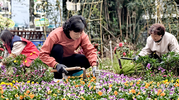 榜樣的力量是無窮的。當張克萍種下的第一批花草綻放出鮮艷花朵時,鄰居們紛紛被眼前的美景打動?!翱吹剿粋€人辛辛苦苦把荒地變得這么好看,我們也想加入進來?!惫鸢⒁绦χf。就這樣,從一個人孤軍奮戰(zhàn),到幾戶居民搭把手,再到越來越多的人主動參與,最終形成了45戶居民共同參與的共建隊伍。居民桂阿姨憑著造型設計的天賦,成了花園的“總設計師”,居民們種好花草后,她總會細心指導修改,讓每一塊小區(qū)域都獨具特色。