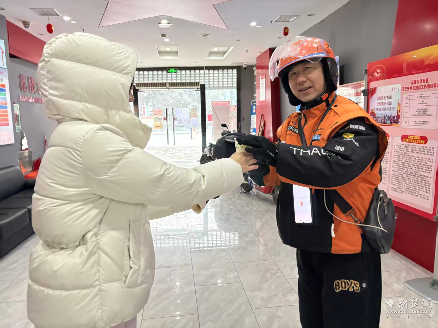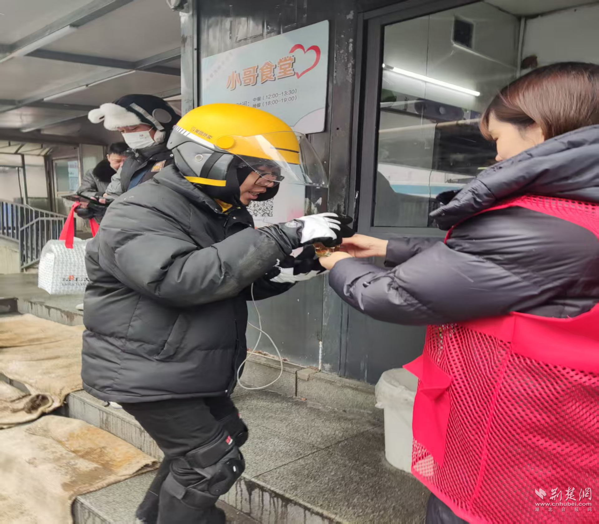 寒潮來臨前后,江漢區(qū)各街道依托江城驛站、愛心商戶和“小哥食堂”等服務(wù)陣地,迅速將取暖、飲水、熱食等保障送到一線。
