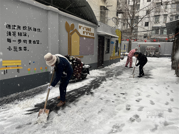 一大早,三名居民志愿者便率先行動,有人清掃路面浮雪,有人揮舞鐵鍬鏟除薄冰,還有人主動疏導(dǎo)過往居民,提醒大家小心路滑。在志愿者的帶動下,越來越多居民走出家門加入掃雪隊(duì)伍,原本寂靜的小院變得熱鬧起來,歡聲笑語驅(qū)散了冬日寒意,鄰里距離也在并肩勞動中悄然拉近。社區(qū)工作人員帶著掃雪工具趕來時,正撞見熱火朝天的勞動場景,隨即也加入掃雪行列。