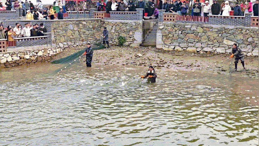 村民們拉動(dòng)手中的漁網(wǎng),平靜的水面頓時(shí)沸騰,魚兒打滾撒歡。圍觀人群爆發(fā)出陣陣歡呼,伴隨著攝影師們快門的咔嚓聲,這一鄉(xiāng)村傳統(tǒng)捕魚場(chǎng)景被定格在許多游客的手機(jī)屏幕中。