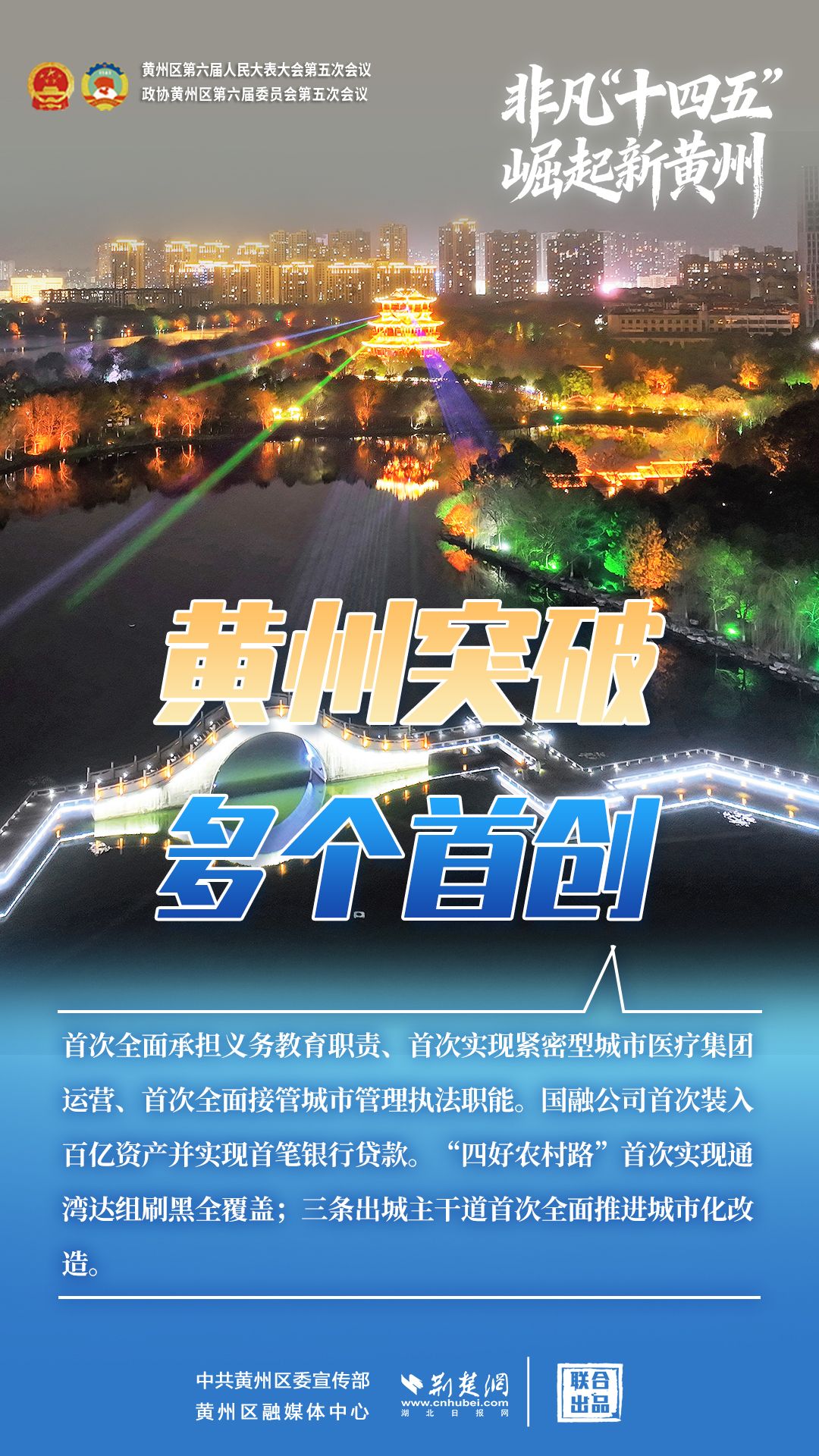 在黃州區(qū)“兩會”勝利召開之際,特將五年來經濟社會發(fā)展的成就與亮點,凝聚成這組海報,致敬奮斗,昭示未來。