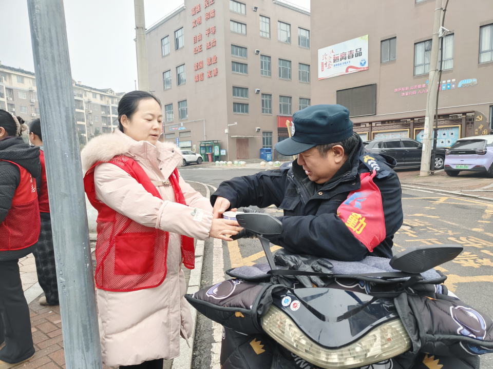 小軍山社區(qū)第一時間將熱粥送到了戶外工作者手中。通訊員供圖